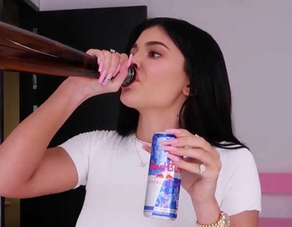 To start, Kylie takes a shot all by herself, simply because she is bored. She then chases the shot of tequila with a big sip of Red Bull. When Khloe finally arrives, she jokes, “I used to do a Red Bull and alcohol too, but now that I am 703, I don’t.”