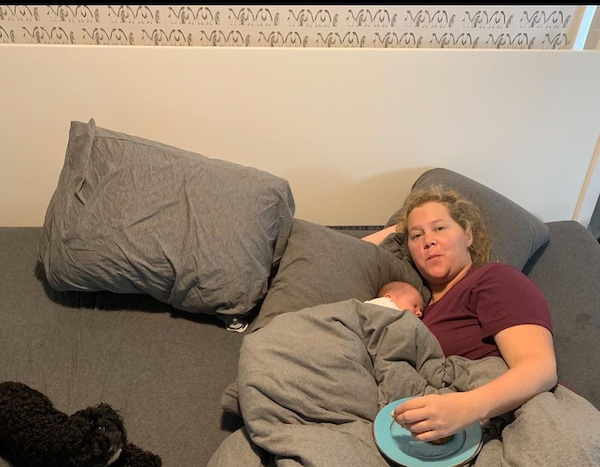 The 38-year-old comedienne and actress posted on her Instagram page on Sunday a collage of photos of her, husband Chris Fischer and their first child, Gene Attell Fischer, who was born in May. One of the pics, which she has never shared before, shows the three in the delivery room.