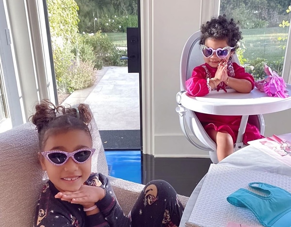 The photo showed the cousins sitting at the table for breakfast. North sported a pair of sloth pajamas while True donned a darling red nightgown. Both little ladies also accessorized their looks with some stylish sunglasses.