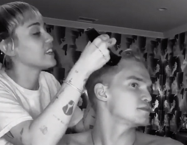When it came to getting the buzz cut just right, Miley handed things over to a pal, who cleaned everything up and perfected Cody’s edges.