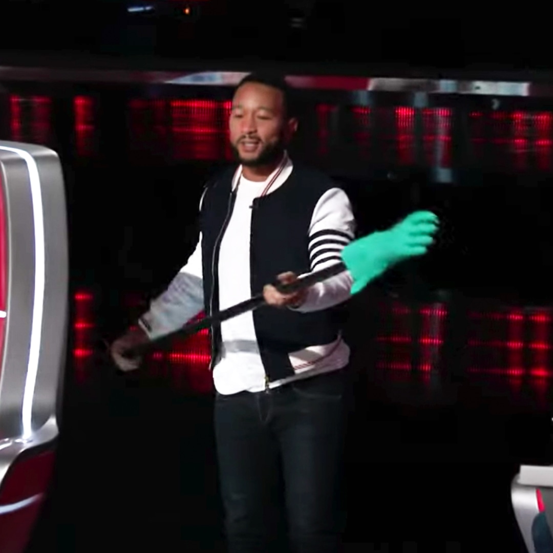 To secure the safety of coaches John Legend, Kelly Clarkson, Blake Shelton and Gwen Stefani, the A-list cast has been asked to abide by COVID-19 safety regulations—some of which are a little creepy. In an exclusive new video, Legend shares just how weird it is to have to interact with his co-stars and Voice contestants with a giant gloved hand.