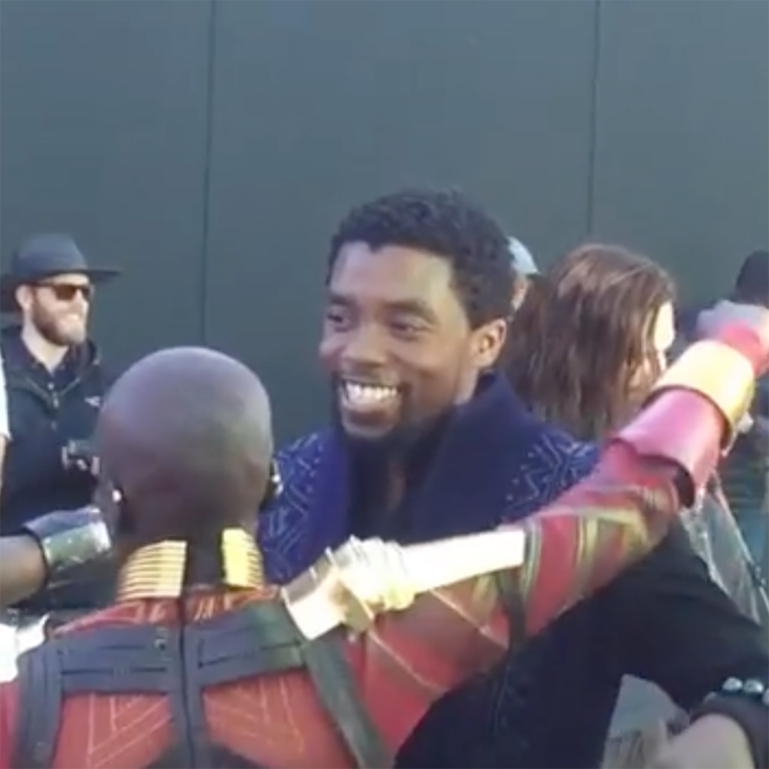 The footage shows Boseman embracing Anthony Mackie, who played Sam Wilson / The Falcon, Sebastian Stan, who played Bucky Barnes, and fellow co-star Danai Gurira, who debuted her character, Okoye, in Black Panther. Main cast members Scarlett Johasson (Black Widow) and Chris Evans (Captain America) and many production crew members are seen clapping, while Boseman is presented with a birthday cake.