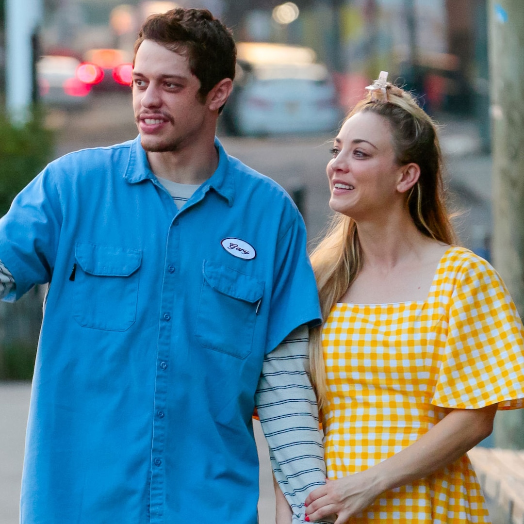In what marked her first public sighting since filing for divorce from Karl Cook on Friday, Sept. 3, Kaley Cuoco was back to work on set of her and Pete Davidson‘s buzzy rom-com, Meet Cute. The co-stars were spotted sharing some sweet PDA as cameras rolled, with The Flight Attendant star outfitted in a yellow gingham frock and Pete in a mechanic’s button down.