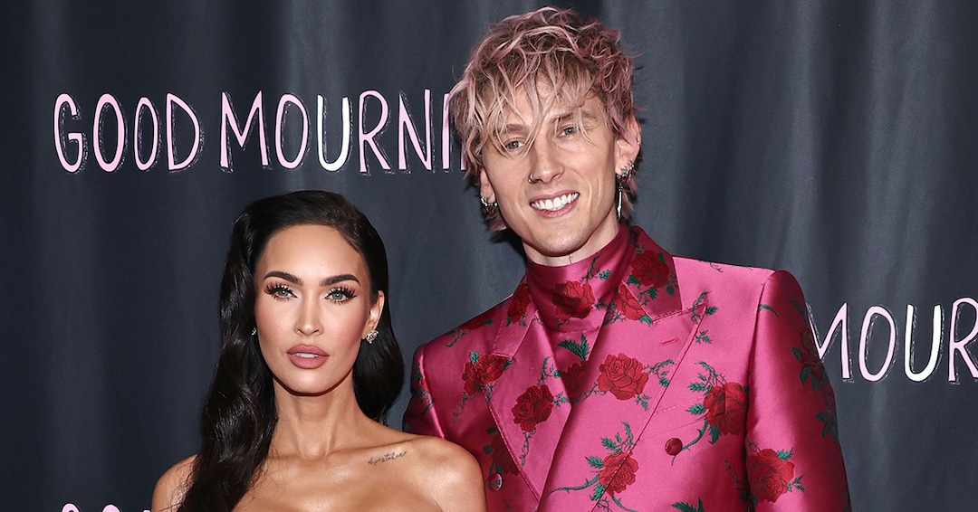 Megan Fox and Machine Gun Kelly wore coordinating ensembles at the world premiere of their new movie Good Mourning in West Hollywood, Calif. on May 12. The actress, 35, donned a shimmery light pink column dress by Philosophy di Lorenzo Serafini and Andrea Wazen heels while the musician, 32, sported a hot pink rose-covered suit by Dolce & Gabbana.